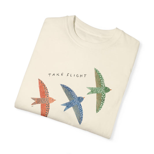 Take Flight - birds - Unisex Garment-Dyed Comfort Colors T-shirt - by Christy Beasley